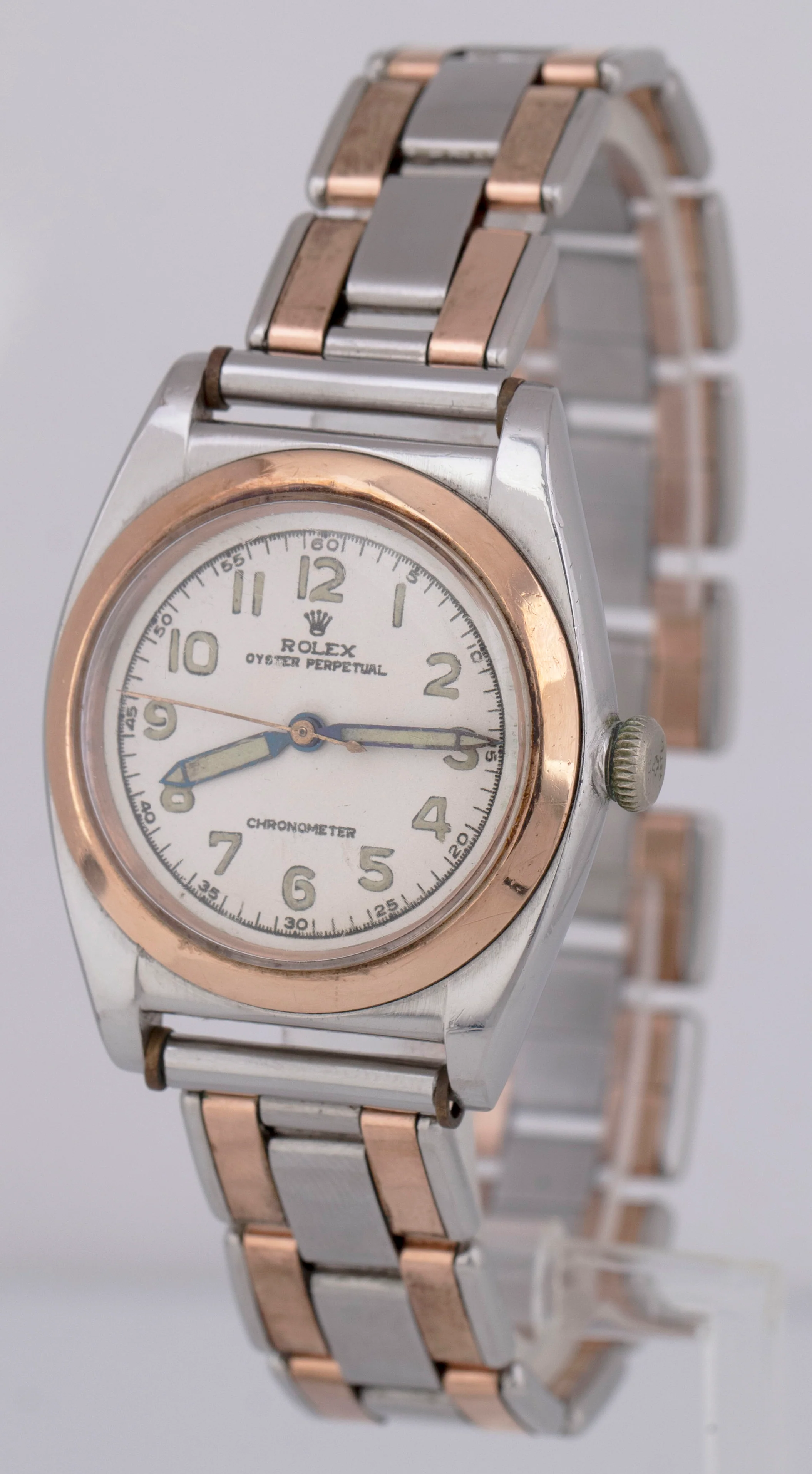 1945 Vintage Rolex Oyster Perpetual ROSE GOLD Bubbleback 32mm White Watch 3133