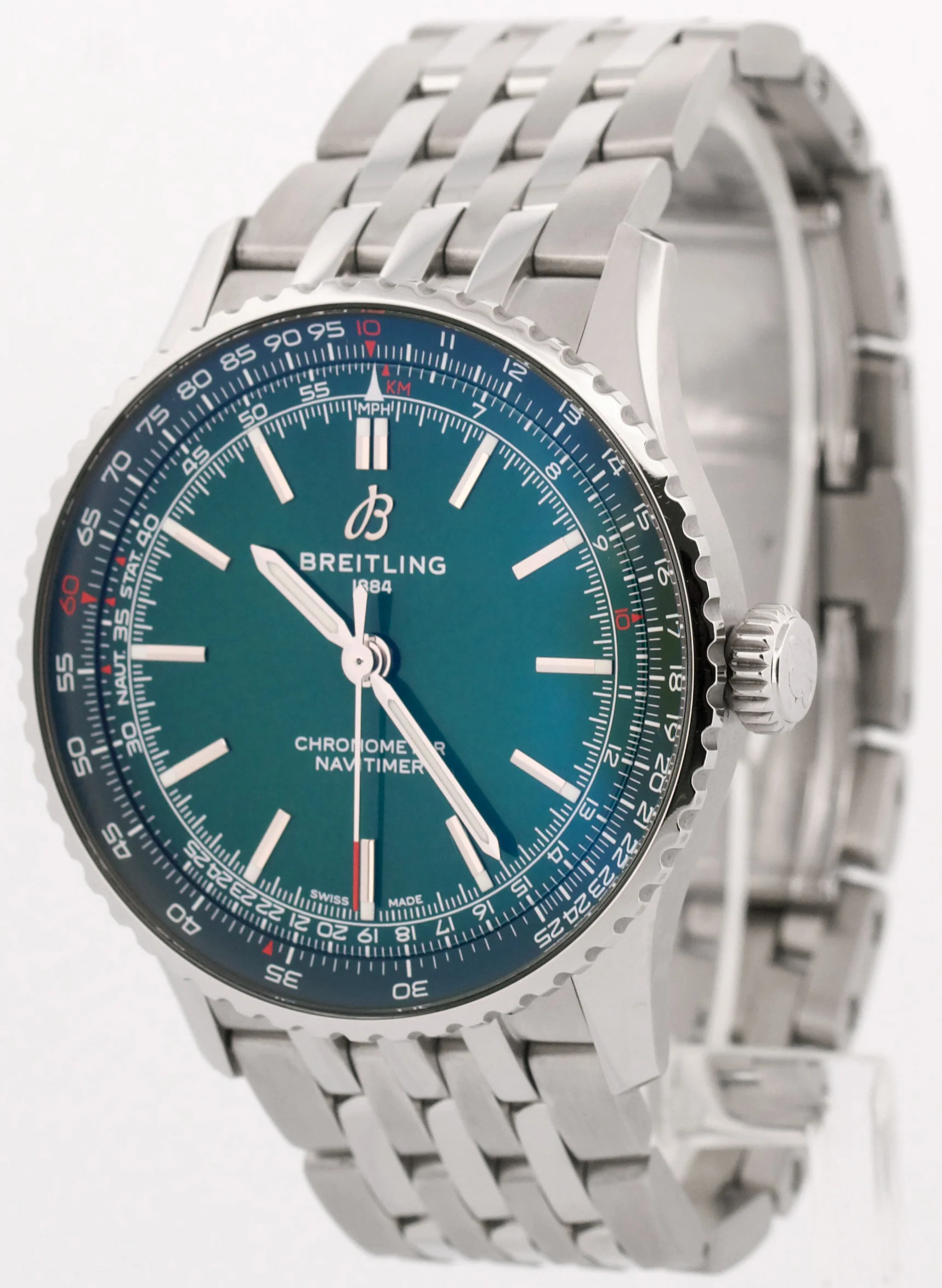 2024 PAPERS Breitling Navitimer 41 Steel GREEN Stainless Steel 41mm A17329 BOX
