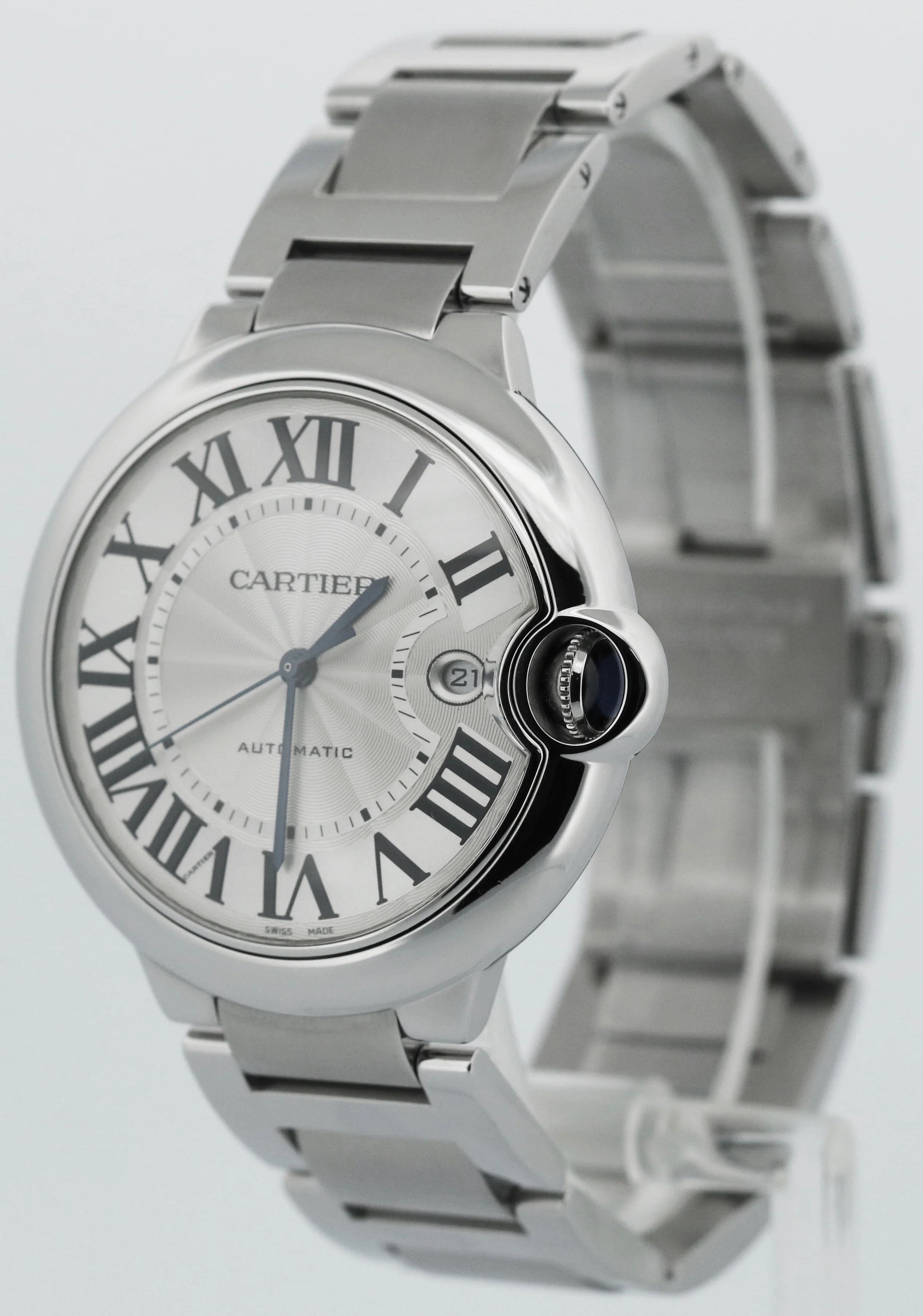 Cartier Ballon Bleu 42mm W69012Z4 SILVER GUILLOCHE Stainless Roman 3765 Watch