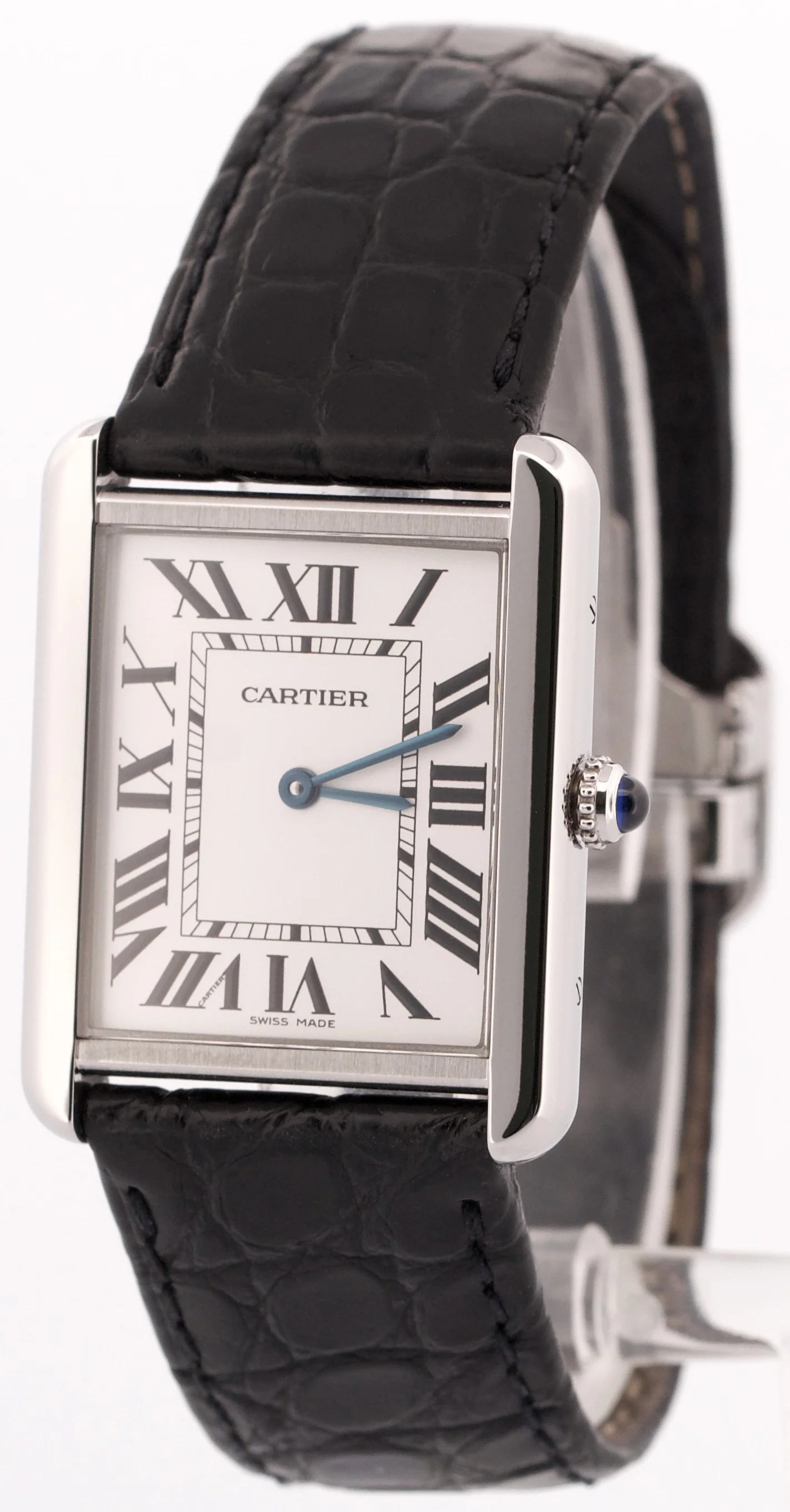 Cartier Tank Solo Stainless Steel WHITE Roman Quartz 2715 W1018355 Leather Watch
