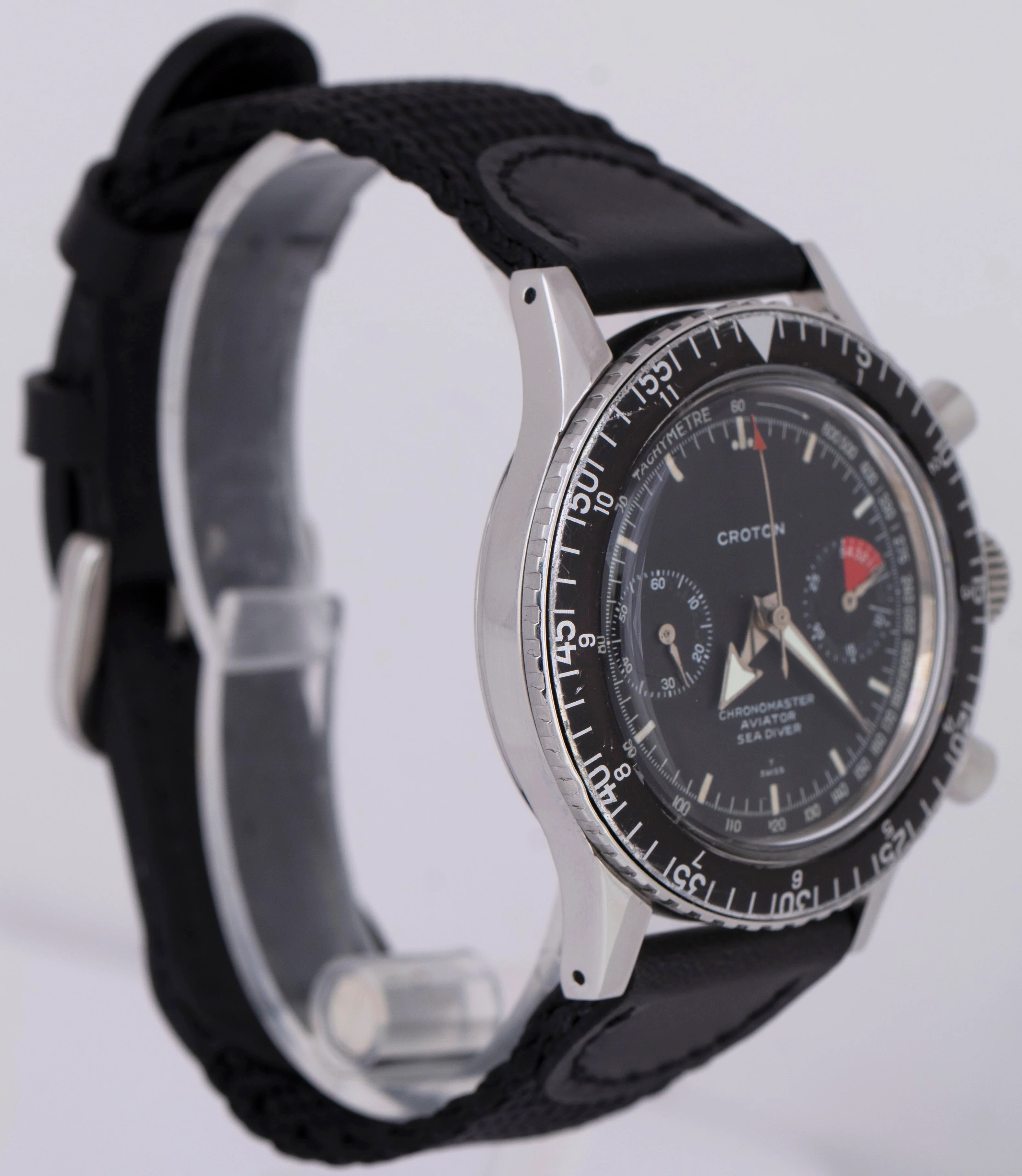 Men's Vintage Croton Chronomaster Aviator 38mm Black Chronograph Watch 105-25249