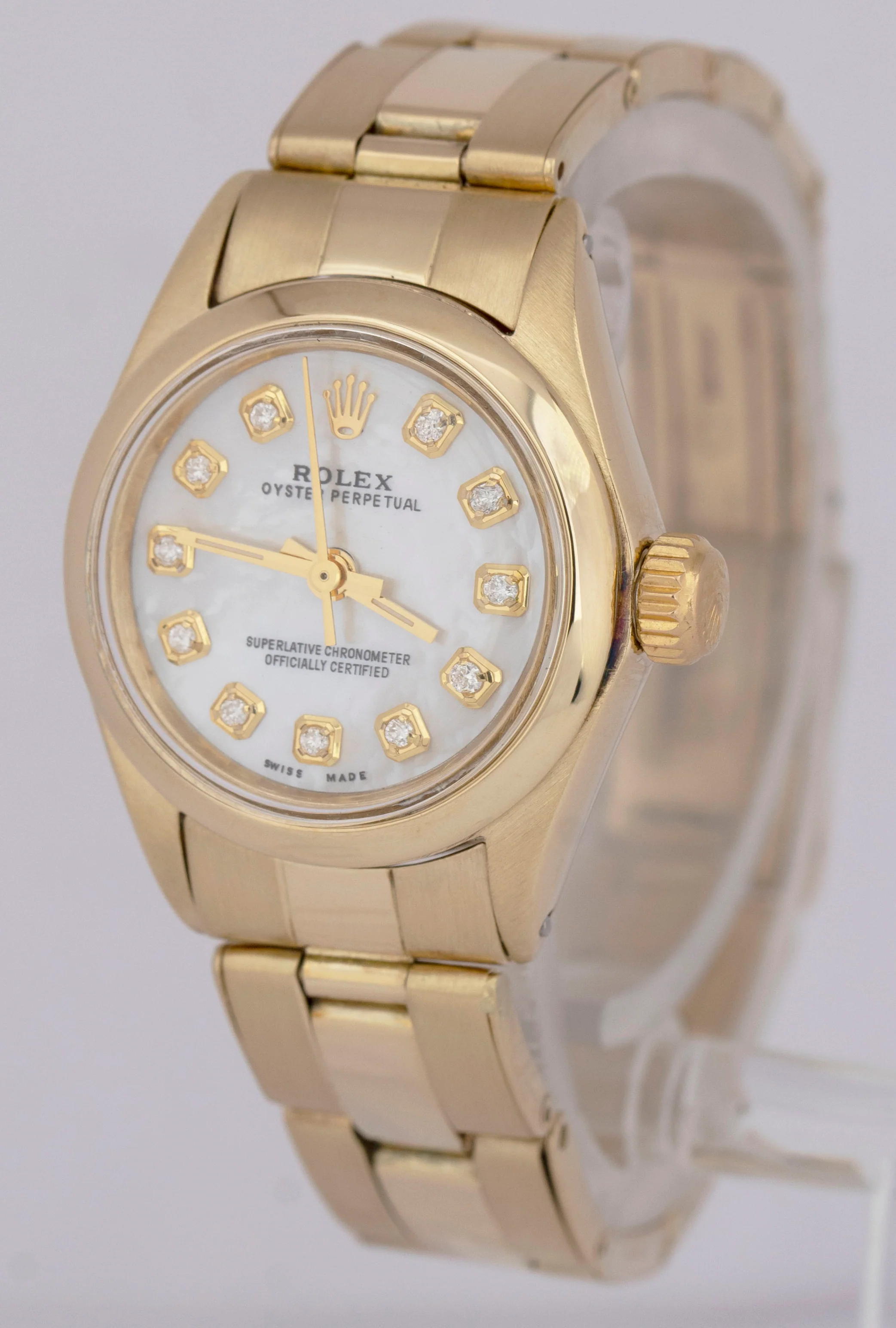 MINT Ladies Rolex Oyster Perpetual 24mm SOLID GOLD 14K Watch DIAMOND MOP 6718