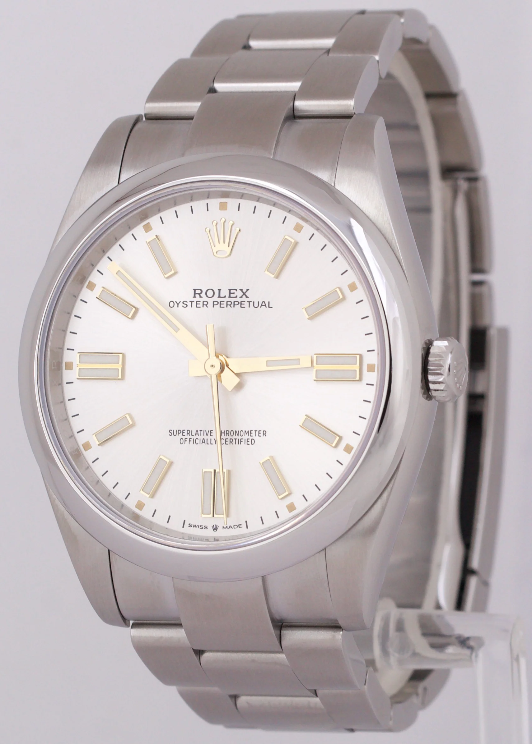 MINT NEW PAPERS Rolex Oyster Perpetual 41mm SILVER Steel Watch 124300 Watch BOX