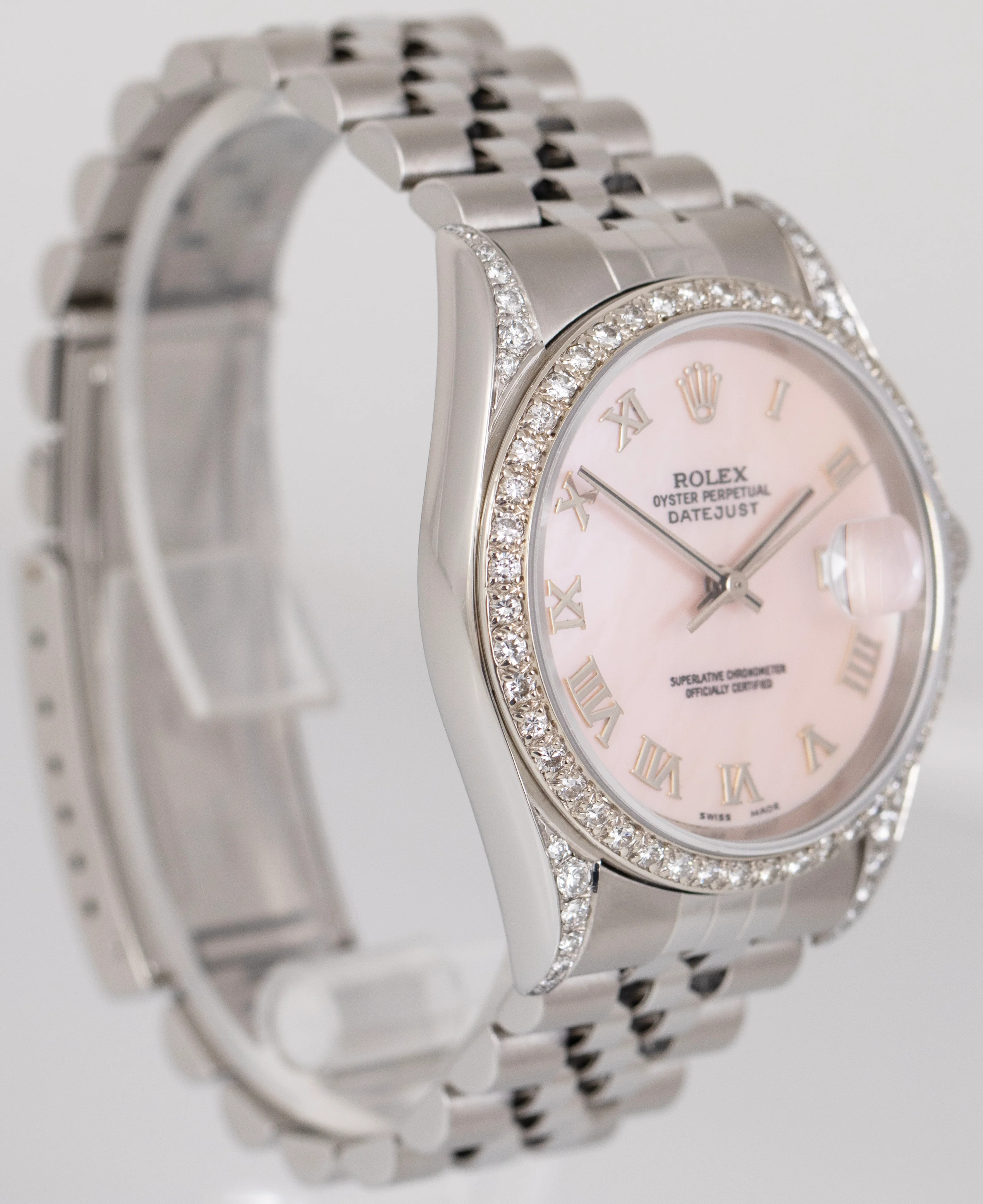 MINT Rolex DateJust 36mm Pink MOP Steel Diamond Automatic Jubilee Watch 16234