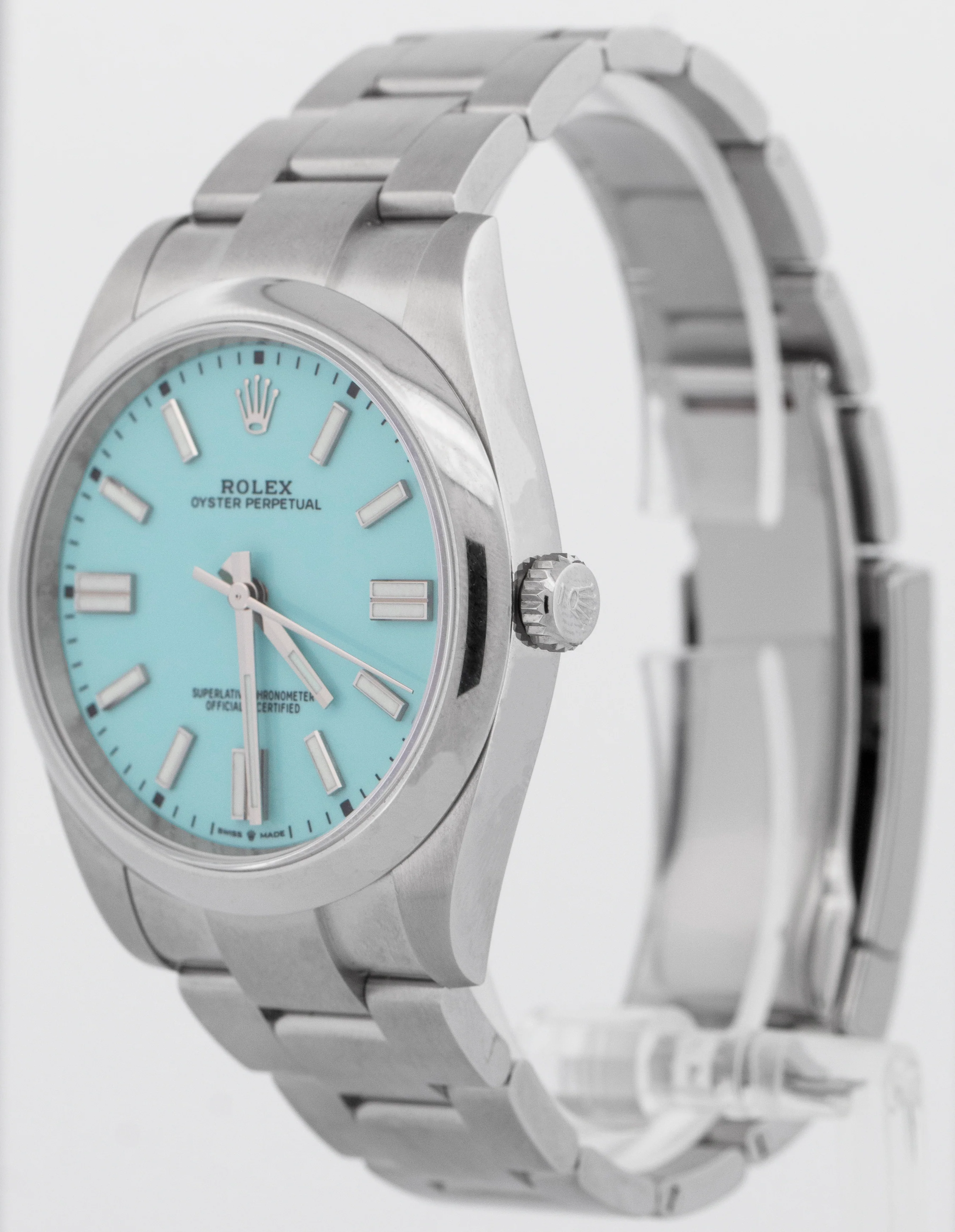 NEW FULLY STICKERED PAPERS Rolex Oyster Perpetual 41 TURQUOISE BLUE 41mm 124300