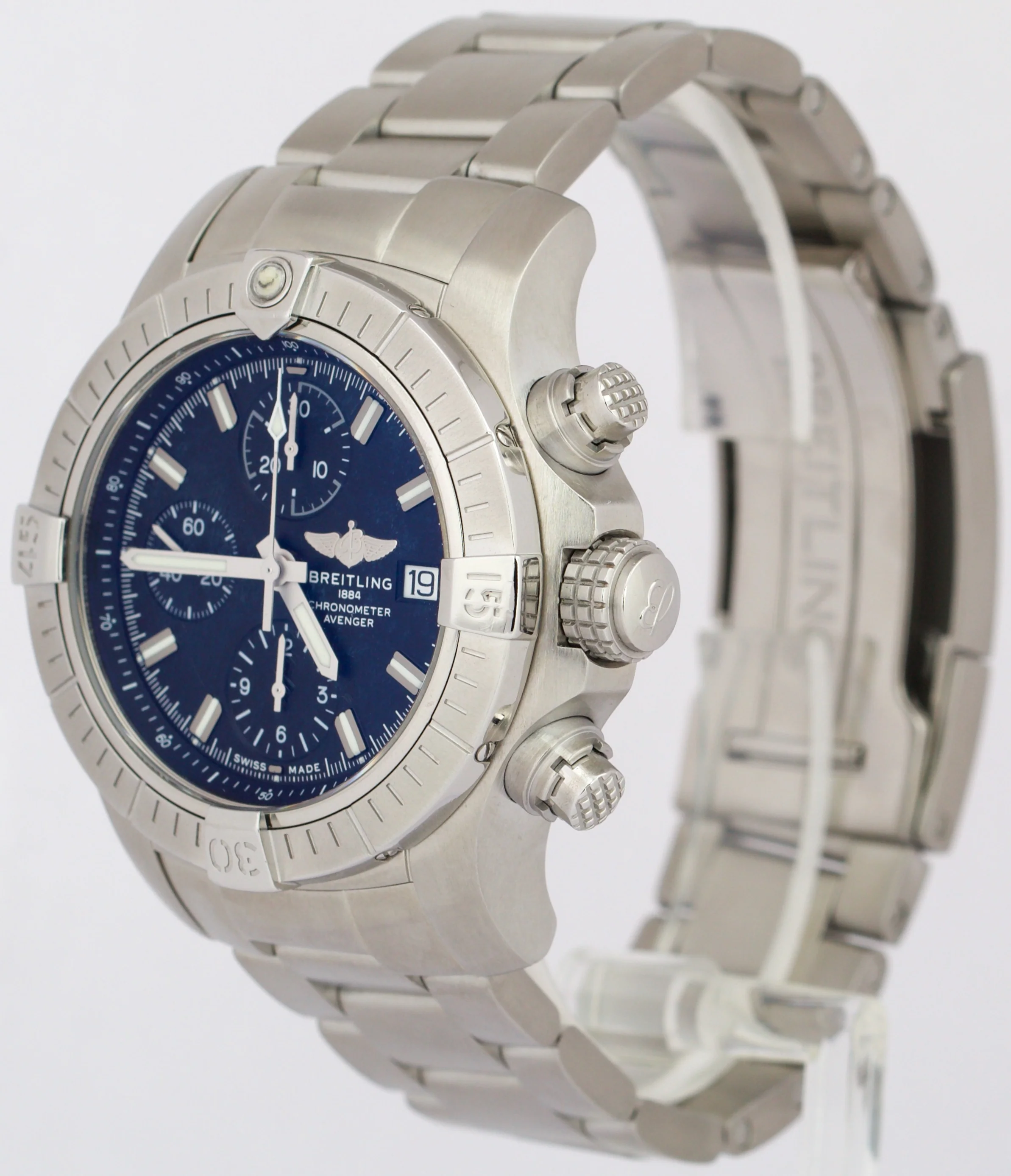 PAPERS Breitling Avenger Chronograph 43mm Black Stainless Automatic A13385 BOX