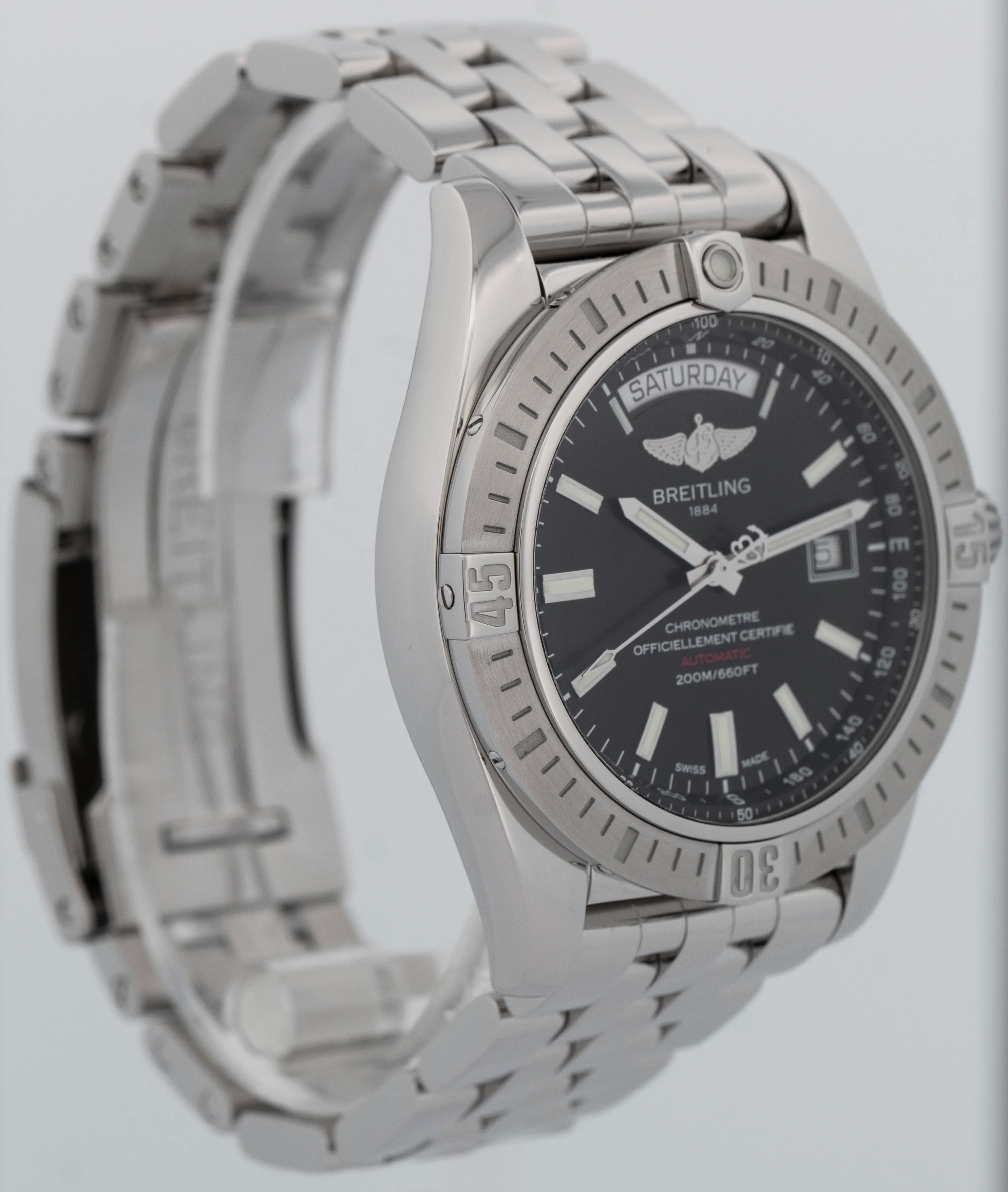 PAPERS Breitling Galactic 44mm Stainless Steel Black Date Watch A45320 BOX