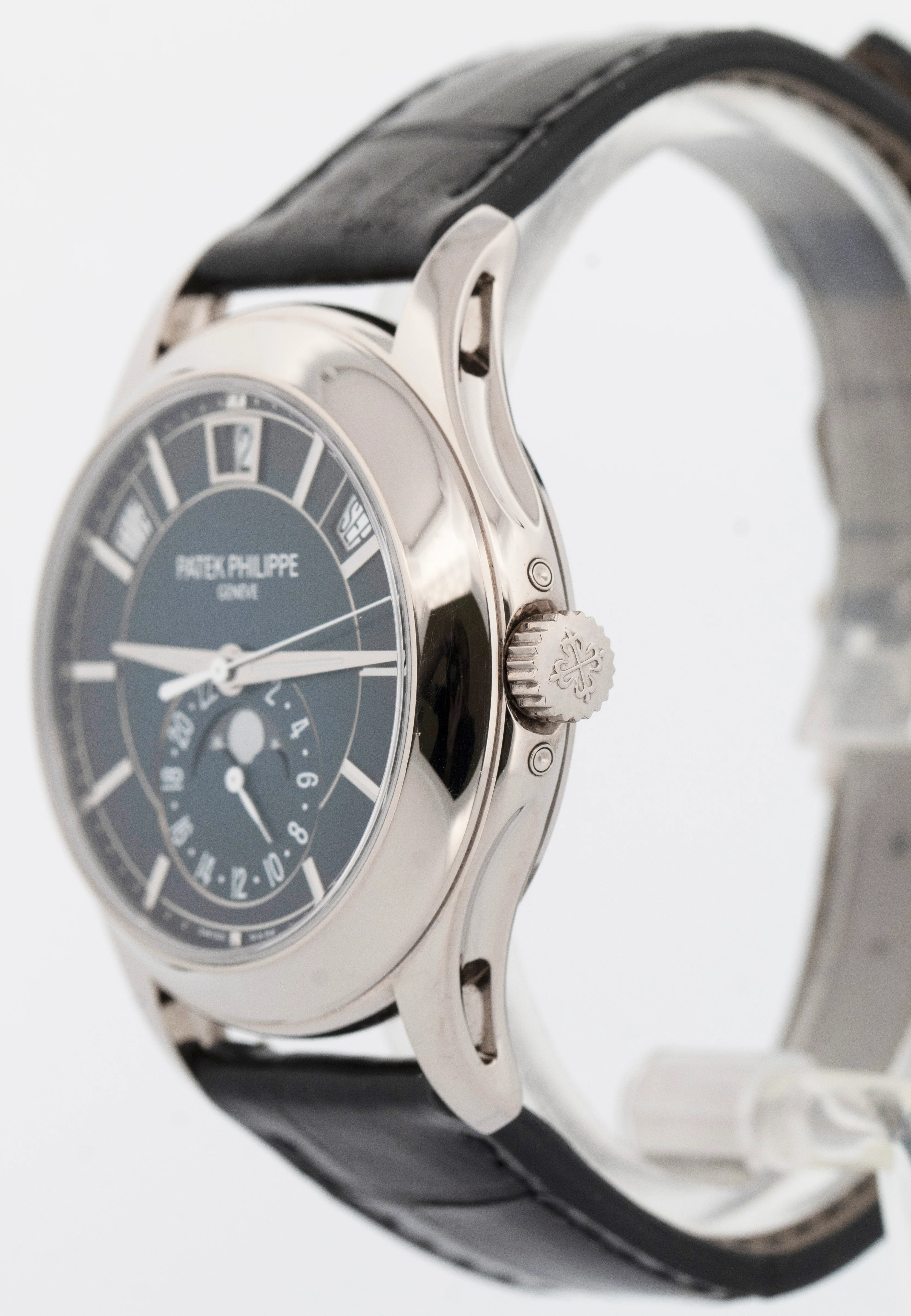 | Band | Patek Philippe Dark Blue Leather Strap with 18K White Gold Tang Buckle |