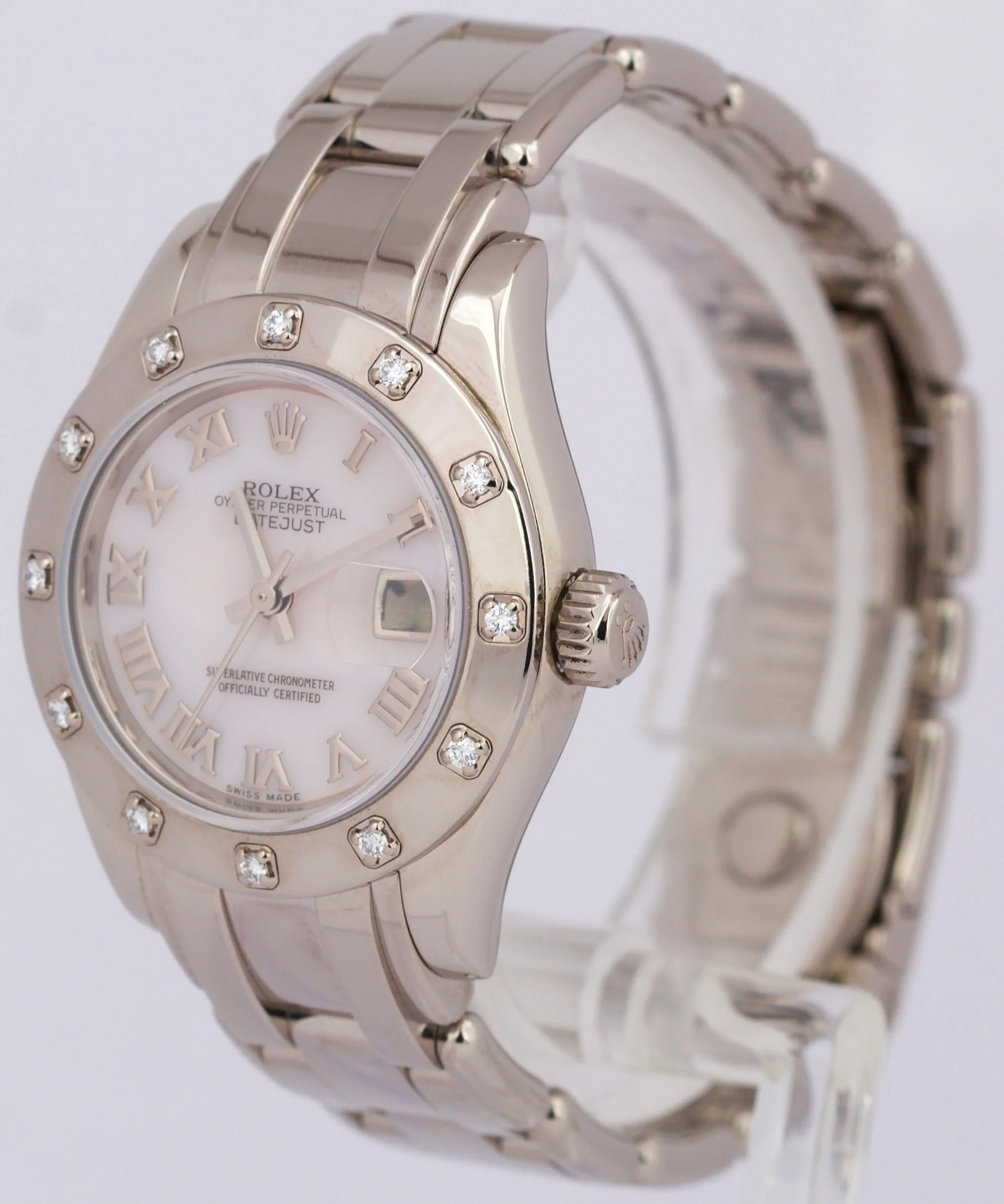 Rolex DateJust Pearlmaster 18k White Gold DIAMOND MOP ROMAN 29mm 80319 Watch BOX