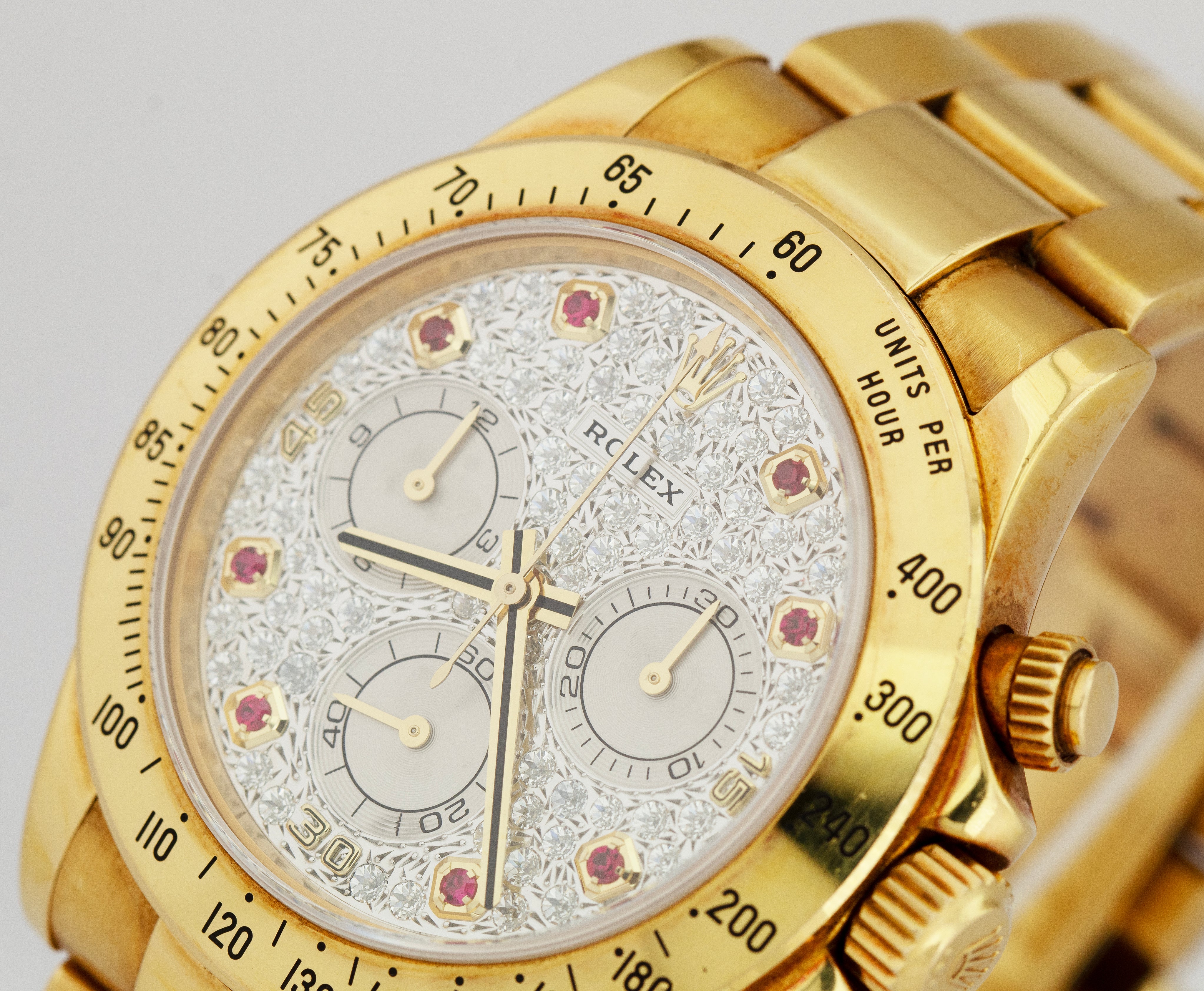 Rolex Daytona FACTORY DIAMOND RUBY PAVE 40mm Yellow Gold 116528 Watch BOX PAPERS
