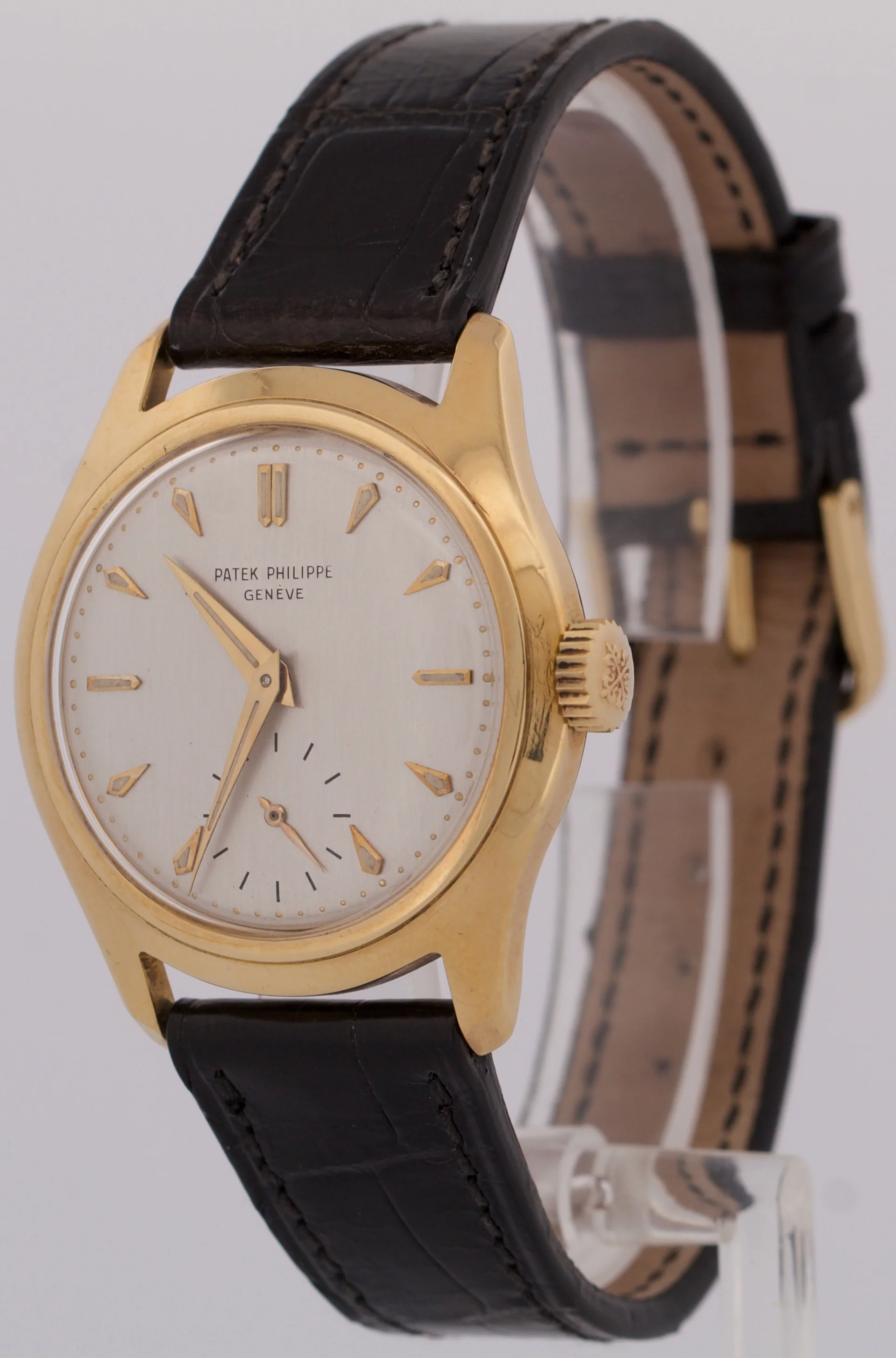 VINTAGE Patek Philippe Calatrava 35mm SILVER Manual 18K Yellow Gold Leather 2532